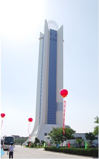 公司建造的高速電梯測試塔已于日前完工,測試塔主體高116米,塔內設有6個電梯井道。該測試塔已成為許昌市的標志性建筑,測試塔的高度在行業內位于領先地位,可以測試8米/秒的高速電梯。目前,塔內裝有4米/秒和6米/秒的高速電梯。該塔具有可檢測電梯的各種性能并研究的高科技設施,隨著測試塔的竣工,公司的電梯產品將有機會和國際知名品牌電梯看齊。