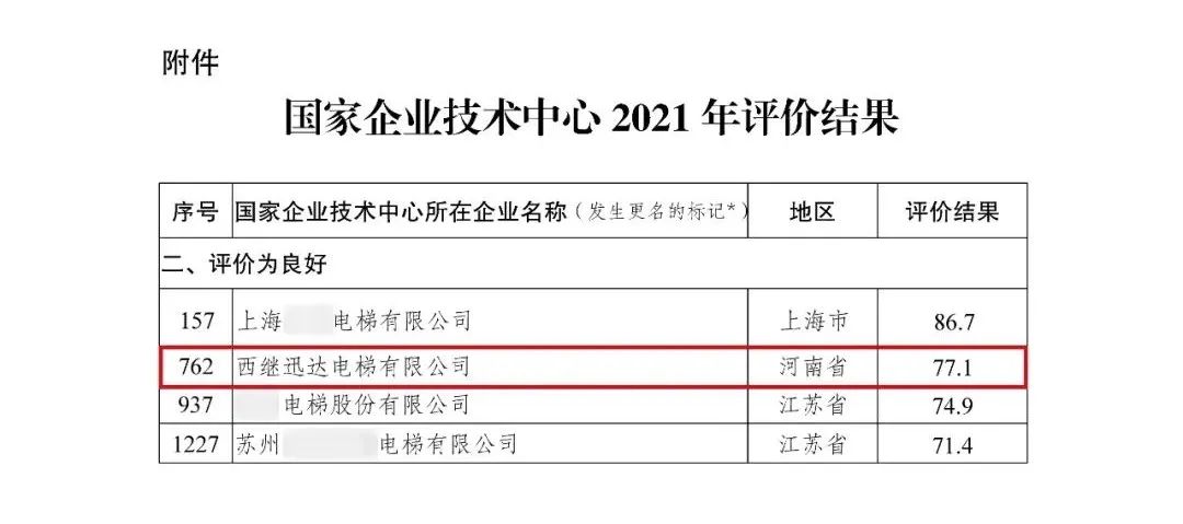 國家企業技術中心2021年評價結果出爐 西繼迅達電梯行業排名第二
