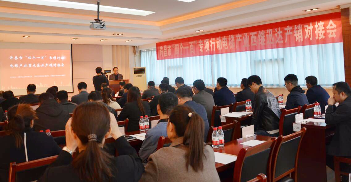 3月19日,由許昌市工信局、市住建局、開發區管委會聯合舉辦的全市“四個一百”專項行動電梯產業重點企業產銷對接會,在西繼迅達三樓會議室隆重召開。開發區管委會及許昌市相關局委領導蔚鐘聲、侯現釗、葛國民、閆永輝,以及許昌市重點企業、房地產企業的負責人參加了此次會議。會議由許昌市開發區管委副主任李海波主持召開。