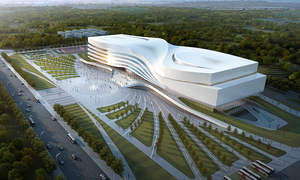 位于隨州市白云大道一側,鐘表音樂展覽館東側。項目的建筑形式非常獨特。在設計過程中,將白云、波浪、銀杏三大自然元素巧妙融合,與周圍良好的自然環境相協調,充分體現出“云流水、羽隨州”的寓意。