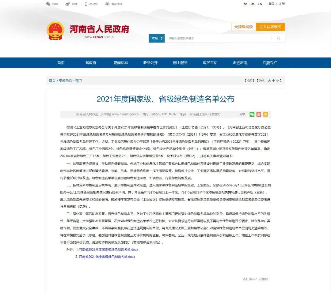 西繼迅達成功入選國家綠色制造企業名單
