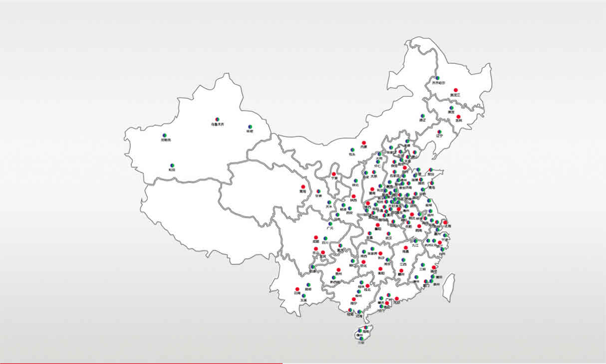 100+銷售網點,300+維保網點及技術支持遍布全國,服務當地客戶。